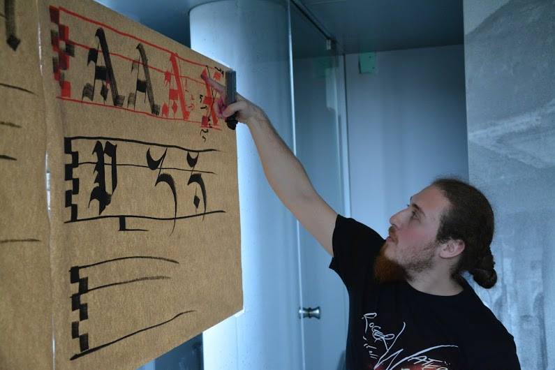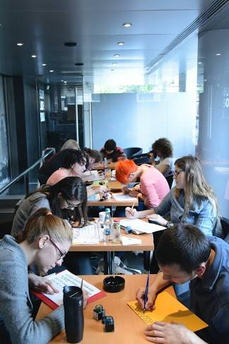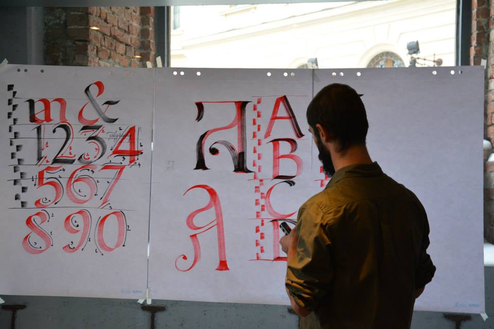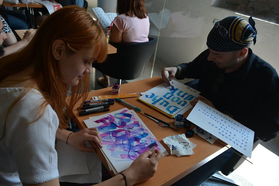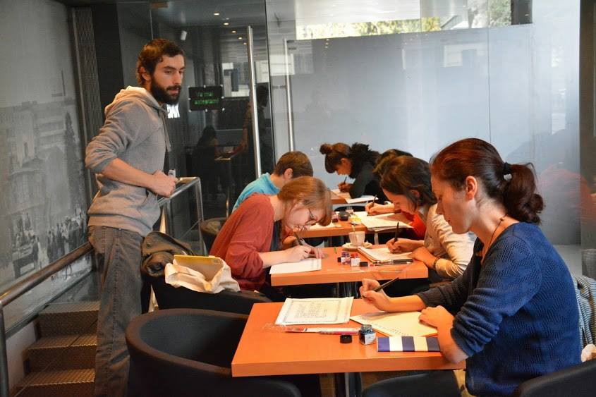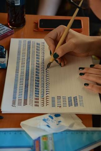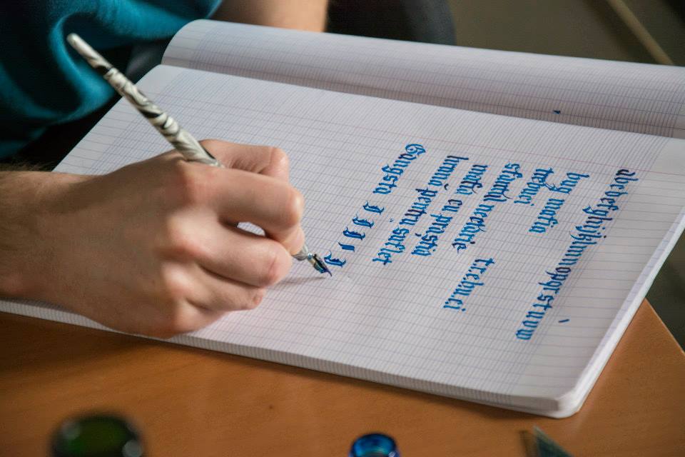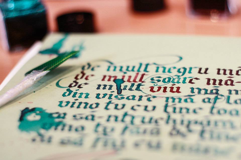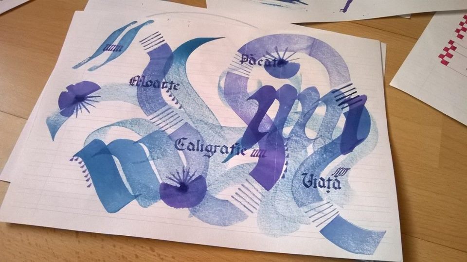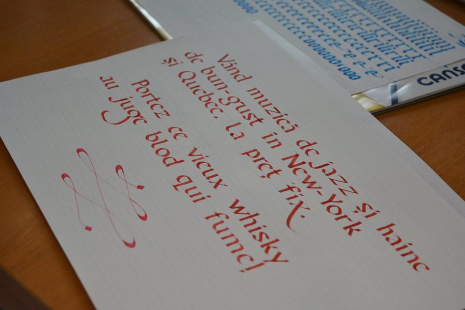 Calligraphy workshop with Georgian Constantin and Sorin Trăstaru. 8 meetings where people learn foundational hand, gothic and some modern calligraphy and to be patient. See Georgian’s account of the first workshop here.