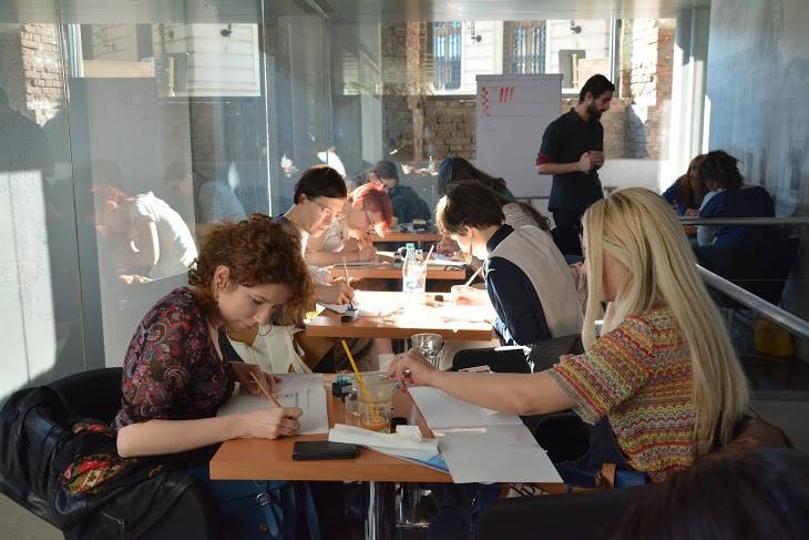 Creative writing workshop. It is our first workshop, it takes place twice a year, in the spring and in the autumn. If you are selected, you will take part in 16 meetings, for 2 months, getting fiction homework after every meeting. In the first 4 years the trainers were writers Florin Iaru and Marius Chivu, and since autumn 2016 we work with writers T. O. Bobe and Bogdan-Alexandru Stănescu.