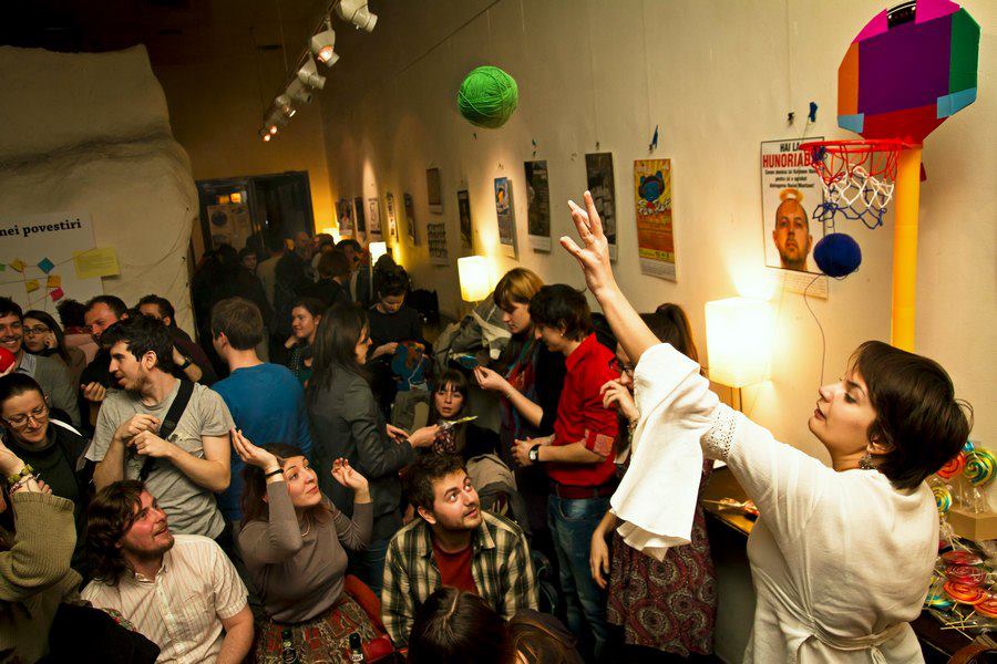 On the 14th of March, we launched the first issue of Revista de Povestiri at Clubul Țăranului. More than 250 people attended the launch, we know because we gave them stickers!, mostly thanks to Motanov’s teaser campaign on Facebook. This inaugurated a series of highly creative and playful events, one every month, celebrating the current issue.